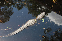 Gliding in our boat through the murky tannic acid waters, overhanging trees mirrored in the dark depths creating a mystical atmosphere, we spy a log floating up ahead. But wait, the log suddenly moves toward us and we can see beady, menacing eyes staring back at us- it’s an alligator!! So went our fascinating field trip to Okefenokee Swamp Park in Georgia. Alligators, turtles, lizards, snakes, LARGE spiders, and humidity combined with 30* temperatures on the first day of Fall…this is very different than home! I think we are all feeling that many of the things we are experiencing are very surreal.