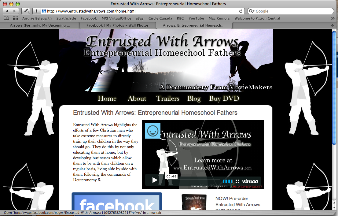 http://www.facebook.com/pages/Entrusted-With-Arrows/110527638982215